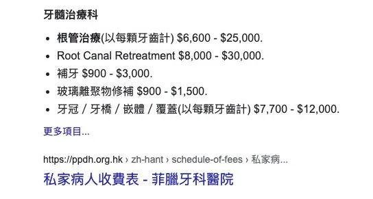 根管治疗中,不计牙冠费用,一颗牙齿依难易程度,要价6600港币至25000港币不等。