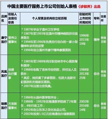 中国主要医疗服务上市公司创始人及初创历程