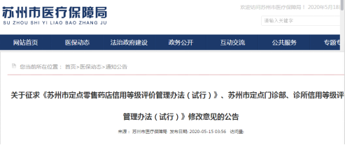 近日,苏州市医保局发布了关于征求《苏州市定点门诊部、诊所信用等级评价管理办法(试行)》修改意见的征求意见稿(下简称《办法》),剑指加强医疗保障基金监管,实行医保计分制,希望强化定点门诊部、诊所的自律意识和诚信意识,引导依法诚信从业。《办法》自2020年7月1日起实施。(苏州市医保局)