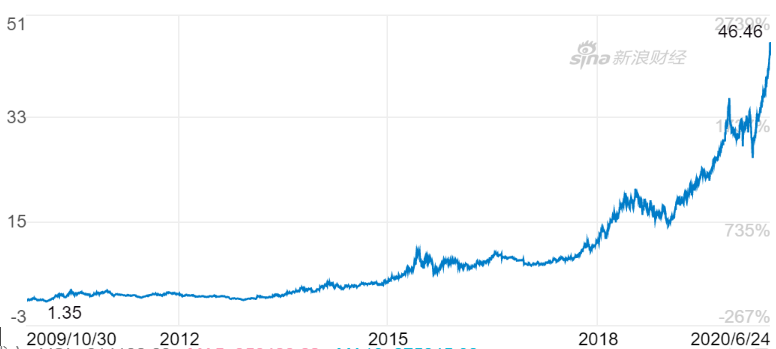 爱尔眼科二级市场股价增长年线 截图自新浪财经