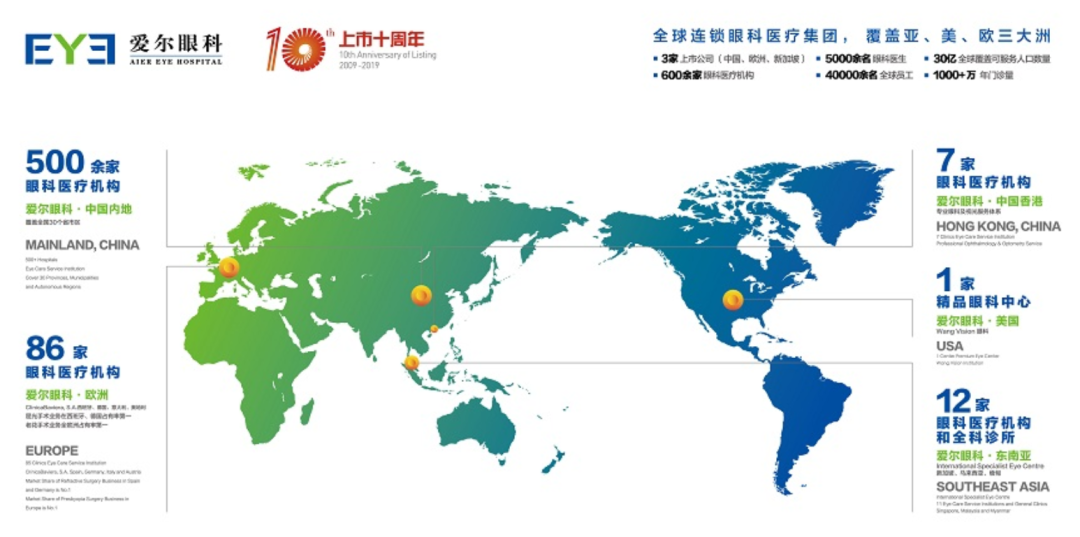 爱尔眼科的全球连锁分布图